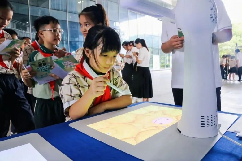 它在桌面上投射出一个23英寸的无屏交互区,并通过红外光学矩阵与动态视觉算法,实现了高精度的指触与笔触双模式操控。孩子可以直接在课本或纸张上操作,指尖所至,光影随行。这种 “纸电融合” 的交互,将虚拟内容的便捷与实体书写的护眼、深度思考特性完美结合,创造了一个远离娱乐干扰、手眼脑协同的沉浸式学习能量场,从行为习惯上助力专注力的养成。